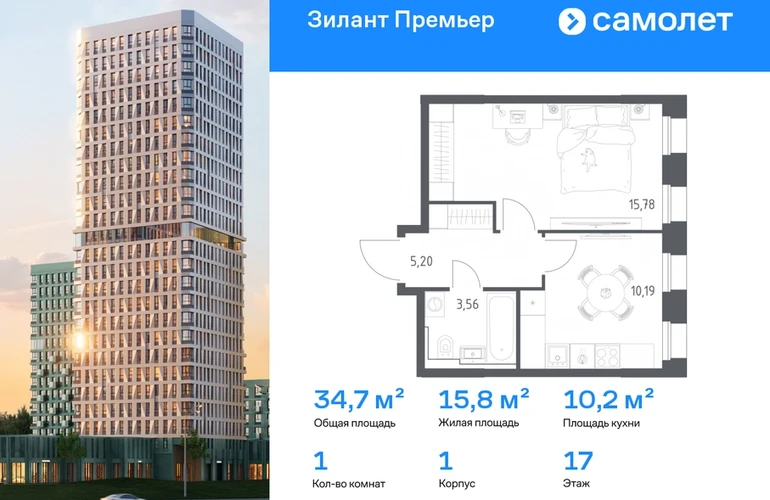 Строим кварталы для жизни с заботой о будущем. Предлагается 1-комнатная квартира комфорт-класса 34,73 кв.м в корпусе 1 на 17 этаже, в ЖК «Зилант Премьер» Квартира с предчистовой отделкой. Доступность дополнительных опций уточняйте у застройщика. Приобрести квартиру возможно по специальным акциям от застройщика, с текущими условиями акций можно ознакомиться в блоке «Акций». Цена динамическая и может отличаться, уточняйте актуальность у застройщика. Жилой комплекс «Зилант Премьер» расположен в молодом районе города. До кремля — 20 минут на авто. В получасе пешком — метро «Горки». Рядом Горкинско-Ометьевский лес, 3 школы, 2 детских сада и поликлиника, скоро откроется свой детский сад. Дома высотой от 1 до 25 этажей с фасадами, которые оживляют открытые французские балконы. В уютном дворе — детские площадки и воркаут-зона.#yan19-2r1824510#О застройщике