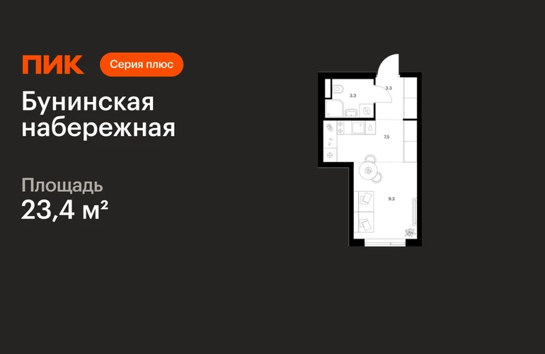 В Новой Москве продаётся студия квартира площадью 23.4 на 2 этаже 16 этажного дома (корпус 2.6/1.2, секция 2) в проекте ПИК «Бунинская набережная». Удобное расположение 18 минут пешком до станции метро «Потапово» и 12 минут на машине до метро «Бунинская аллея». 9 минут на машине до Солнцево-Бутово-Варшавского шоссе и 17 минут до МКАД. 8 минут на автомобиле до гипермаркета «Глобус». 15 минут на автомобиле до живописного Бутовского лесопарка и заказника «Южное Бутово». Особенности проекта «Бунинская набережная» — камерный квартал «Серии плюс» на берегу Ивановского пруда. В шаговой доступности вся нужная инфраструктура: детские сады, школы, поликлиники, игровая площадка ПлейХаб «Пирамиды» и скейт-парк. Удобные и разнообразные планировки позволят каждому выбрать квартиру для собственного сценария жизни. Преимущества проекта: Отделка: Предчистовая Просторные и светлые лобби с быстрыми тихими лифтами. Дворы-парки с местами для отдыха, детскими и спортивными площадками. Пешеходный бульвар и благоустроенная набережная. Магазины, кафе и полезные сервисы на первых этажах домов. Подземный паркинг. АртикулО застройщике