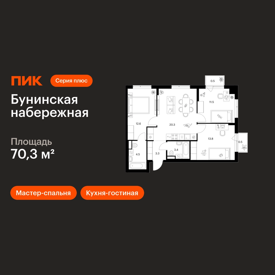 В Новой Москве продаётся 3-комнатная квартира квартира площадью 70.3 на 2 этаже 16 этажного дома (корпус 2.6/1.3, секция 3) в проекте ПИК «Бунинская набережная». Удобное расположение 18 минут пешком до станции метро «Потапово» и 12 минут на машине до метро «Бунинская аллея». 9 минут на машине до Солнцево-Бутово-Варшавского шоссе и 17 минут до МКАД. 8 минут на автомобиле до гипермаркета «Глобус». 15 минут на автомобиле до живописного Бутовского лесопарка и заказника «Южное Бутово». Особенности проекта «Бунинская набережная» — камерный квартал «Серии плюс» на берегу Ивановского пруда. В шаговой доступности вся нужная инфраструктура: детские сады, школы, поликлиники, игровая площадка ПлейХаб «Пирамиды» и скейт-парк. Удобные и разнообразные планировки позволят каждому выбрать квартиру для собственного сценария жизни. Преимущества проекта: Отделка: Готовая Особенности планировки: Мастер-спальня, Разнесенные спальни, Кухня-гостиная, Два и более санузла, Открытый балкон, Внутрипольные конвекторы, Умная планировка Просторные и светлые лобби с быстрыми тихими лифтами. Дворы-парки с местами для отдыха, детскими и спортивными площадками. Пешеходный бульвар и благоустроенная набережная. Магазины, кафе и полезные сервисы на первых этажах домов. Подземный паркинг. АртикулО застройщике