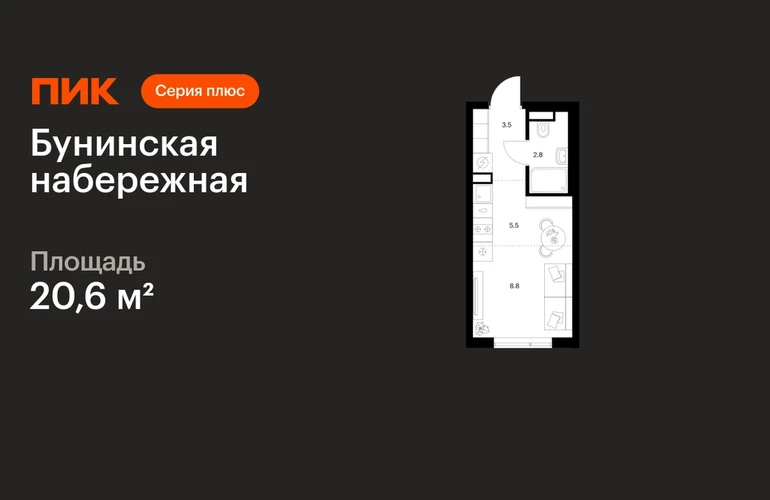 В Новой Москве продаётся студия квартира площадью 20.6 на 7 этаже 16 этажного дома (корпус 2.6/1.4, секция 4) в проекте ПИК «Бунинская набережная». Удобное расположение 18 минут пешком до станции метро «Потапово» и 12 минут на машине до метро «Бунинская аллея». 9 минут на машине до Солнцево-Бутово-Варшавского шоссе и 17 минут до МКАД. 8 минут на автомобиле до гипермаркета «Глобус». 15 минут на автомобиле до живописного Бутовского лесопарка и заказника «Южное Бутово». Особенности проекта «Бунинская набережная» — камерный квартал «Серии плюс» на берегу Ивановского пруда. В шаговой доступности вся нужная инфраструктура: детские сады, школы, поликлиники, игровая площадка ПлейХаб «Пирамиды» и скейт-парк. Удобные и разнообразные планировки позволят каждому выбрать квартиру для собственного сценария жизни. Преимущества проекта: Отделка: Готовая Просторные и светлые лобби с быстрыми тихими лифтами. Дворы-парки с местами для отдыха, детскими и спортивными площадками. Пешеходный бульвар и благоустроенная набережная. Магазины, кафе и полезные сервисы на первых этажах домов. Подземный паркинг. АртикулО застройщике
