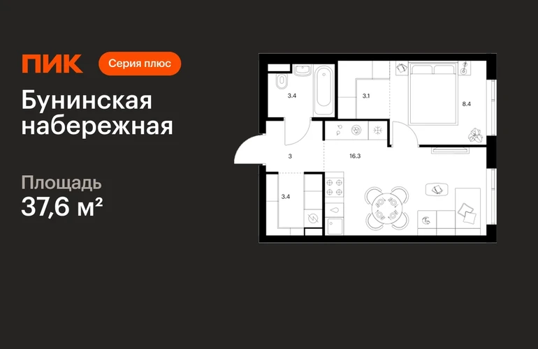 В Новой Москве продаётся 1-комнатная квартира квартира площадью 37.6 на 4 этаже 16 этажного дома (корпус 2.6/1.2, секция 2) в проекте ПИК «Бунинская набережная». Удобное расположение 18 минут пешком до станции метро «Потапово» и 12 минут на машине до метро «Бунинская аллея». 9 минут на машине до Солнцево-Бутово-Варшавского шоссе и 17 минут до МКАД. 8 минут на автомобиле до гипермаркета «Глобус». 15 минут на автомобиле до живописного Бутовского лесопарка и заказника «Южное Бутово». Особенности проекта «Бунинская набережная» — камерный квартал «Серии плюс» на берегу Ивановского пруда. В шаговой доступности вся нужная инфраструктура: детские сады, школы, поликлиники, игровая площадка ПлейХаб «Пирамиды» и скейт-парк. Удобные и разнообразные планировки позволят каждому выбрать квартиру для собственного сценария жизни. Преимущества проекта: Отделка: Предчистовая Особенности планировки: Гардеробная, Кухня-гостиная, Внутрипольные конвекторы, Умная планировка Просторные и светлые лобби с быстрыми тихими лифтами. Дворы-парки с местами для отдыха, детскими и спортивными площадками. Пешеходный бульвар и благоустроенная набережная. Магазины, кафе и полезные сервисы на первых этажах домов. Подземный паркинг. АртикулО застройщике