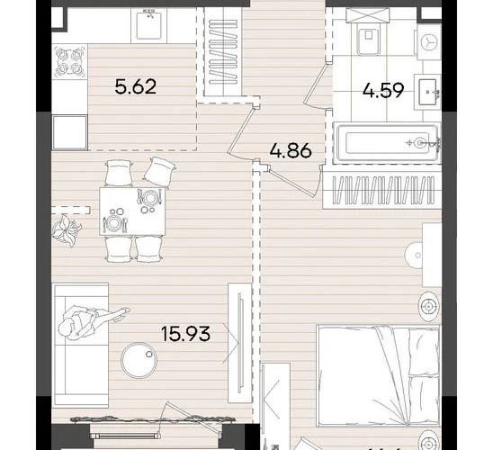2-ком, 49.1 кв.м., 11/23эт.