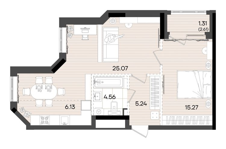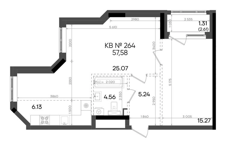 • Общая площадь57.58