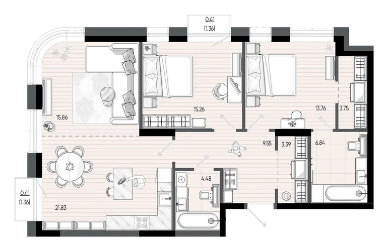 3-ком, 95.54 кв.м., 3/22эт.