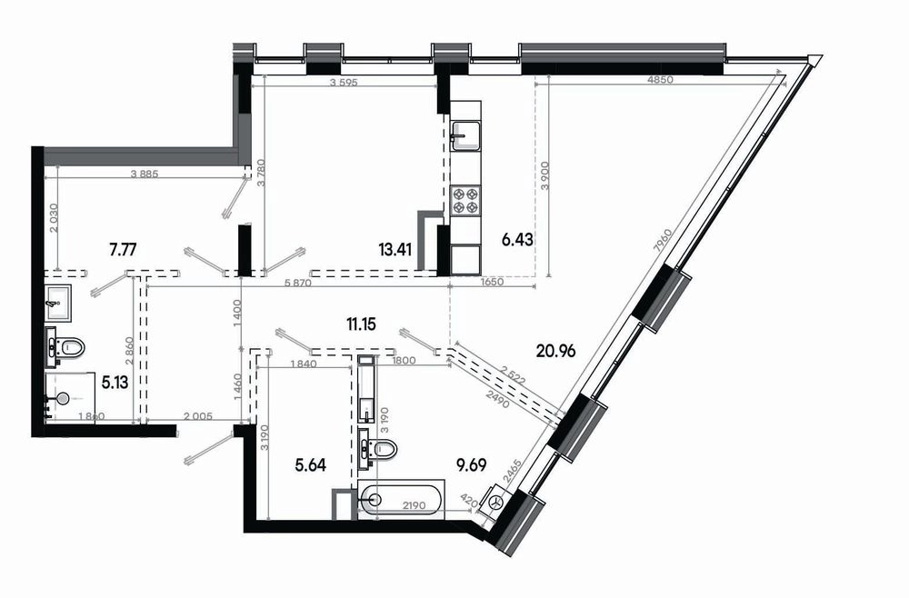 2-ком, 80.18 кв.м., 2/20эт.