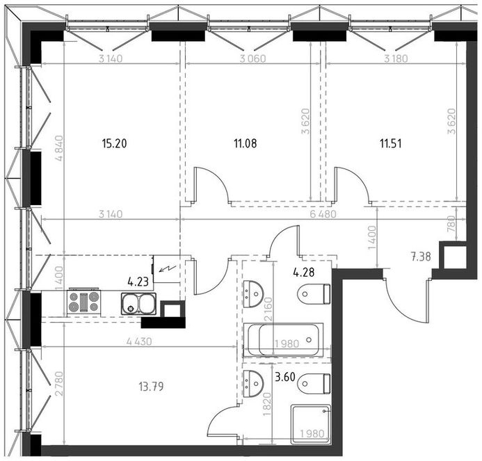Квартирографию проекта отличает разнообразие форматов и планировок. Высокие потолки от 3,4 м и панорамные окна с открыточным видом на Волгу формируют наполненные светом «воздушные» пространства.