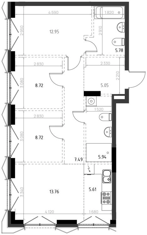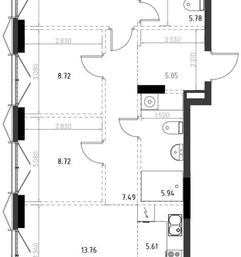 • Комнатность3 ком