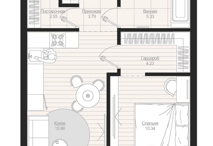 1-ком, 43.94 кв.м., 3/19эт.