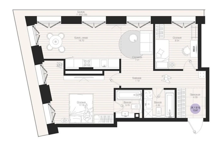 Квартирографию проекта отличает разнообразие форматов и планировок. Высокие потолки от 3,4 м и панорамные окна с открыточным видом на Волгу формируют наполненные светом «воздушные» пространства.